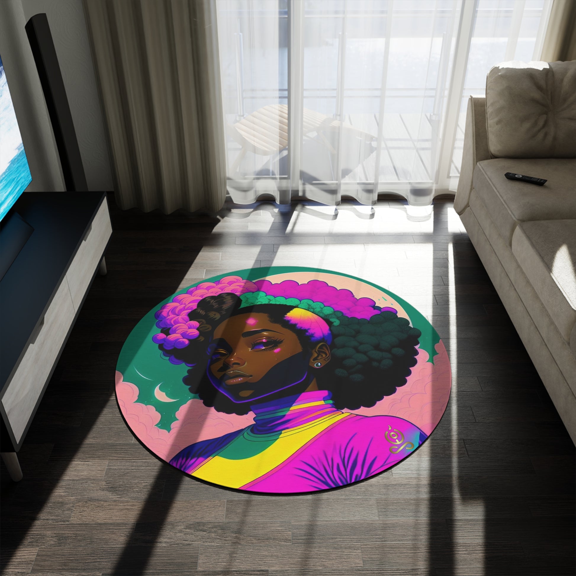 Las alfombras decorativas con diseños alegres y divertidos han vuelto con fuerza. Cree un diseño deslumbrante con gráficos o personajes divertidos e imprímalos en esta alfombra redonda de chenilla 100 % poliéster con una calidad de imagen perfecta. Cuenta con un reverso revestido y bordes con dobladillo para mayor durabilidad.